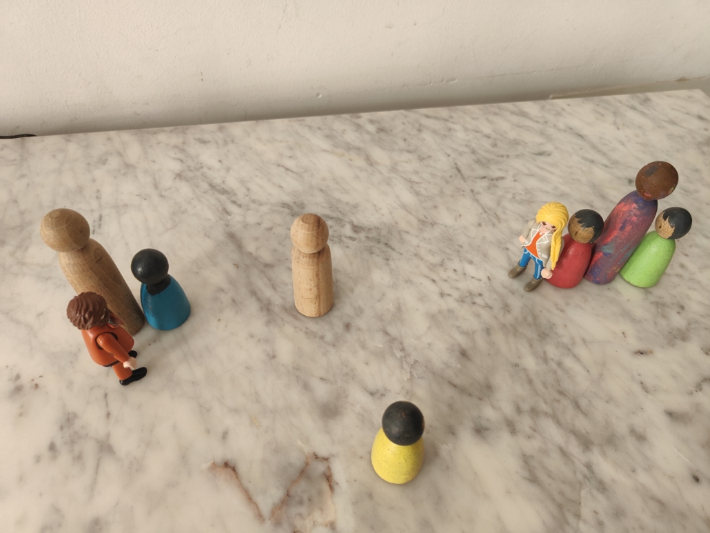 The facilitator then arranges the participants in a way that might be meaningful for the seeker as part of their family constellations approach. Everyone may stay still during the role play, giving the seeker time to connect with the morphogenic field and determine if the arrangement feels true for them.